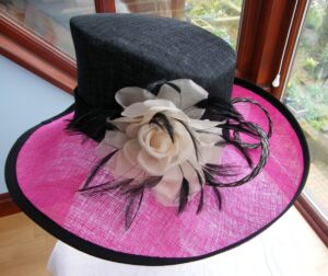 HOT PINK & BLACK RANGE BLACK 64% SILK DRESS PINK DAHLIA DEVORE PRINT & HOT PINK & GOLD SHANTUNG JACKET