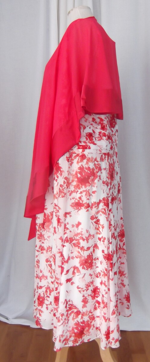 THE HOT PINK JACKET MATCHES PERFECTLY WITH THE SPOT LACE FABRIC OF THE DRESS