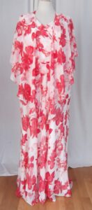 JACQUES VERT COLLECTION IVORY CREPE CHIFFON MAXI DRESS HOT PINK FLORAL PRINT & MATCHING IVORY SHANTUNG POCKET DETAIL JACKET