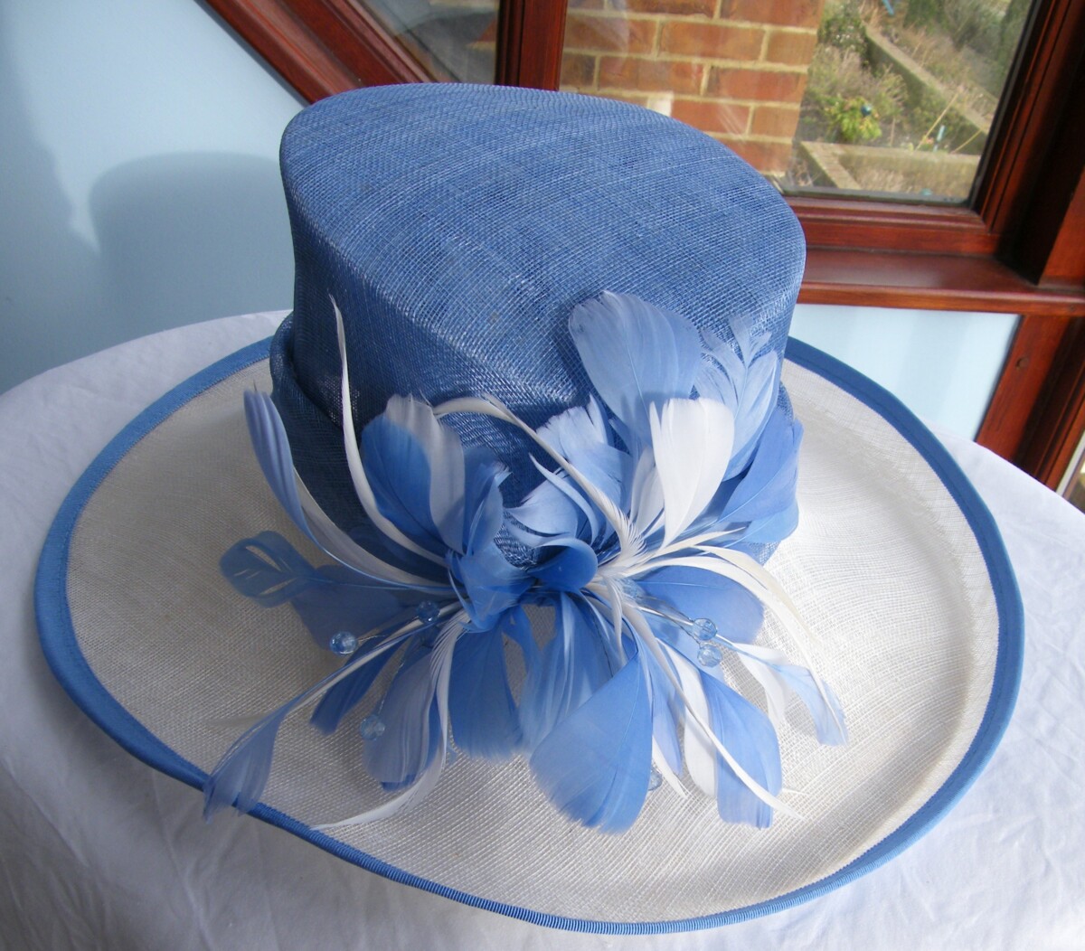 THE MATCHING SKY BLUE LINEN LOOK JACKET PIPED IN IVORY